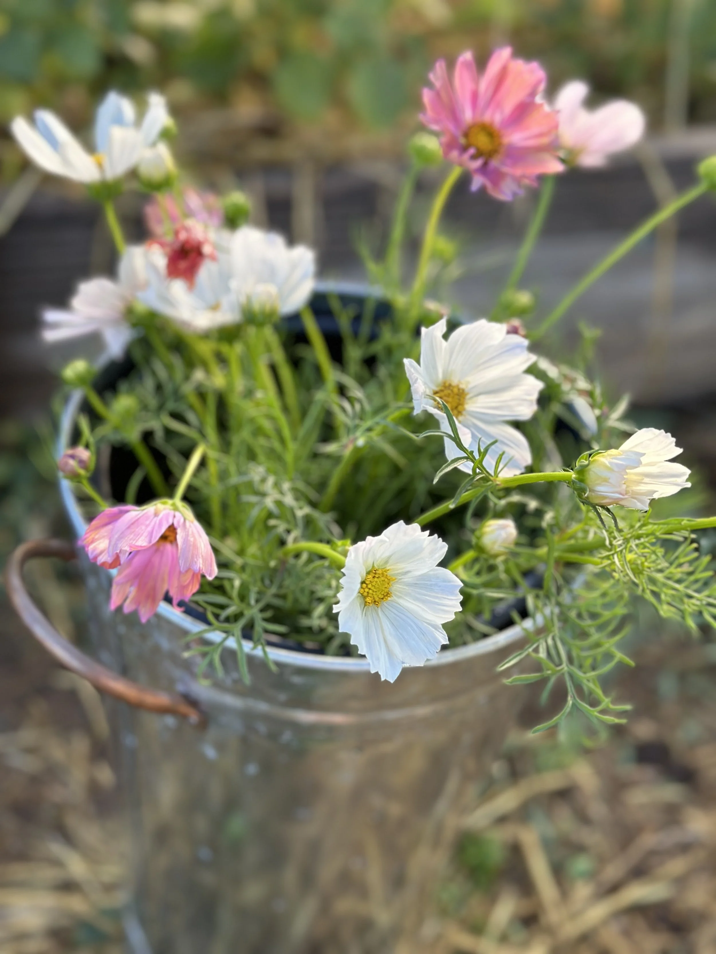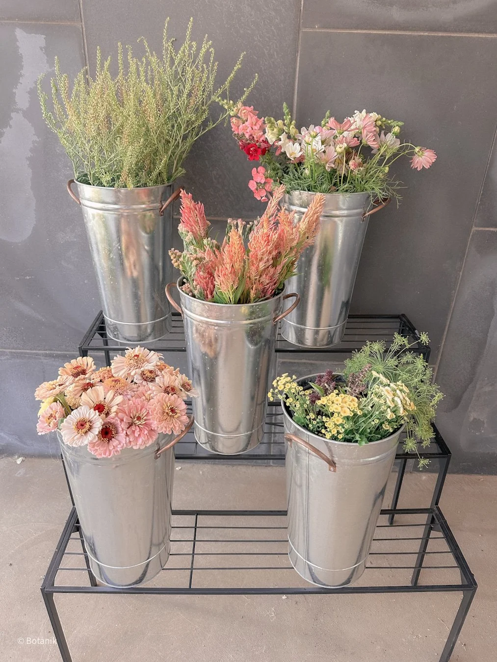 Our seasonal flower buckets are filled with freshly harvested blooms in a curated color palette designed for effortless arranging.